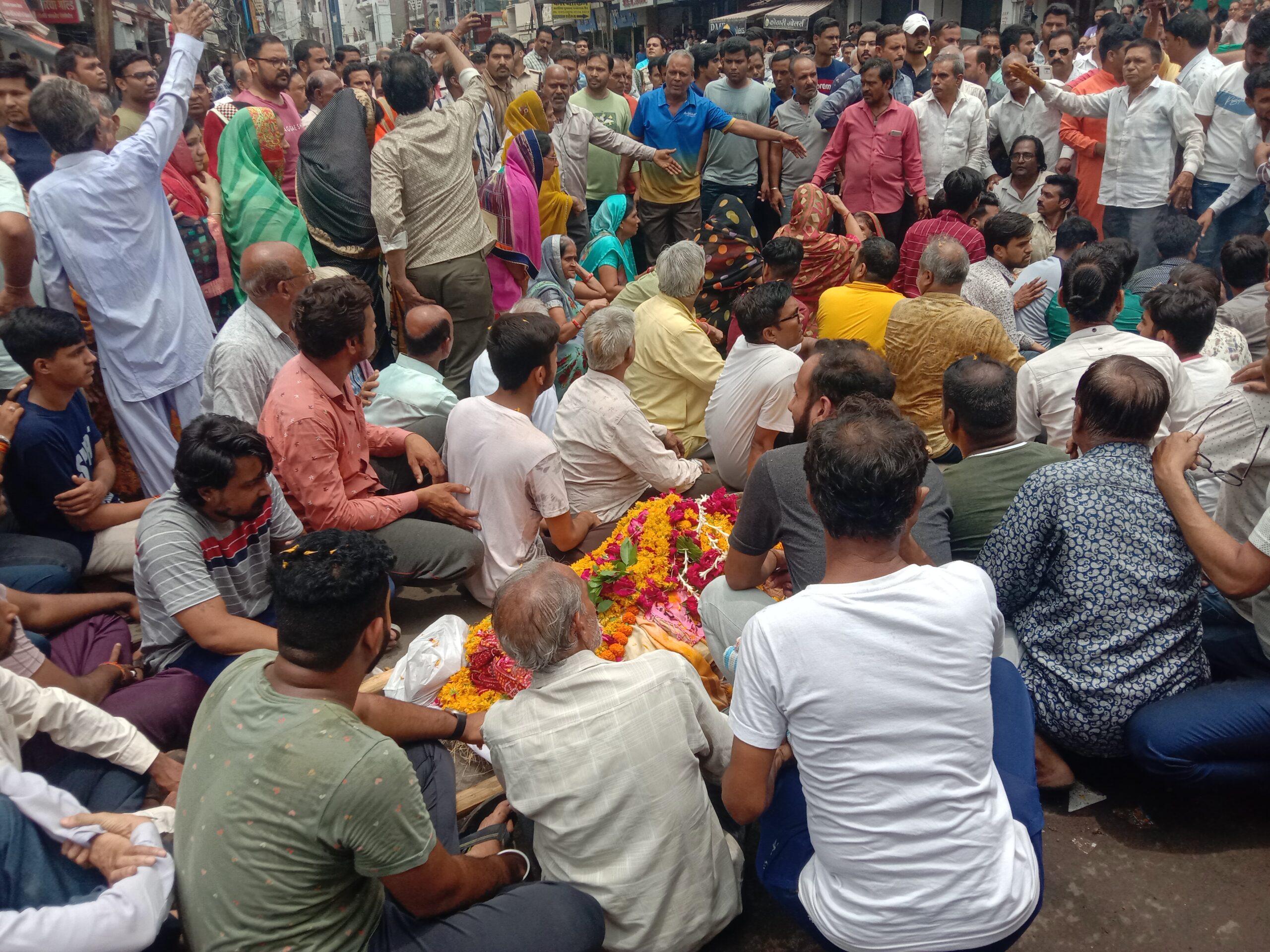 इस हमले में घायल 55 वर्षीय ईश्वरलाल कसेरा का बुधवार शाम को निधन हो गया। हमले में इनका बेटा यश भी घायल हो गया था, जो अभी ठीक है। चाट कारोबारी की उपचार के दौरान मौत होने पर समाज मे आक्रोश पनप गया । गुरुवार दोपहर करीब पौने एक बजे दीनदयाल नगर स्थित मकान से अंतिम यात्रा निकाली , बीच बाजार चांदनी चौक पहुंच कर प्रदर्शन में बदल गई । अंतिम यात्रा में बड़ी संख्या में नागरिक शरीक हुए , और चांदनी चौक पहुंच कर शव को सड़क पर रख कर जाम लगा दिया । प्रदर्शनकारी हमलावरों के मकानों पर बुलडोजर चलाने, फांसी देने की मांग भी की प्रदर्शन में महिलाएं भी शरीक रही । मौके पर प्रशासन के आला अधिकारी भी मोजूद थे।