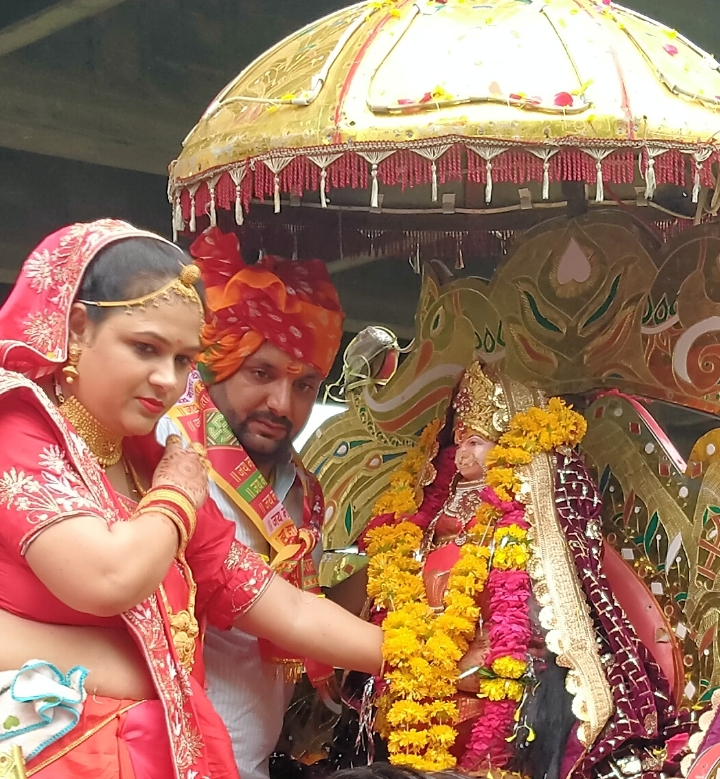 सजीधजी बग्गी में मंयक जाट दशा माता की प्रतिमा लेकर चल रहे थे । शोभायात्रा में अम्बर परिवार एवं जवाहर व्यायामशाला संरक्षक दौलत पहलवान सहित बड़ी संख्या में सदस्य सफेद पोशाक धारण कर शरीक रहे । शोभायात्रा का रास्ते में जगह जगह पुष्पवर्षा कर स्वागत किया ।
