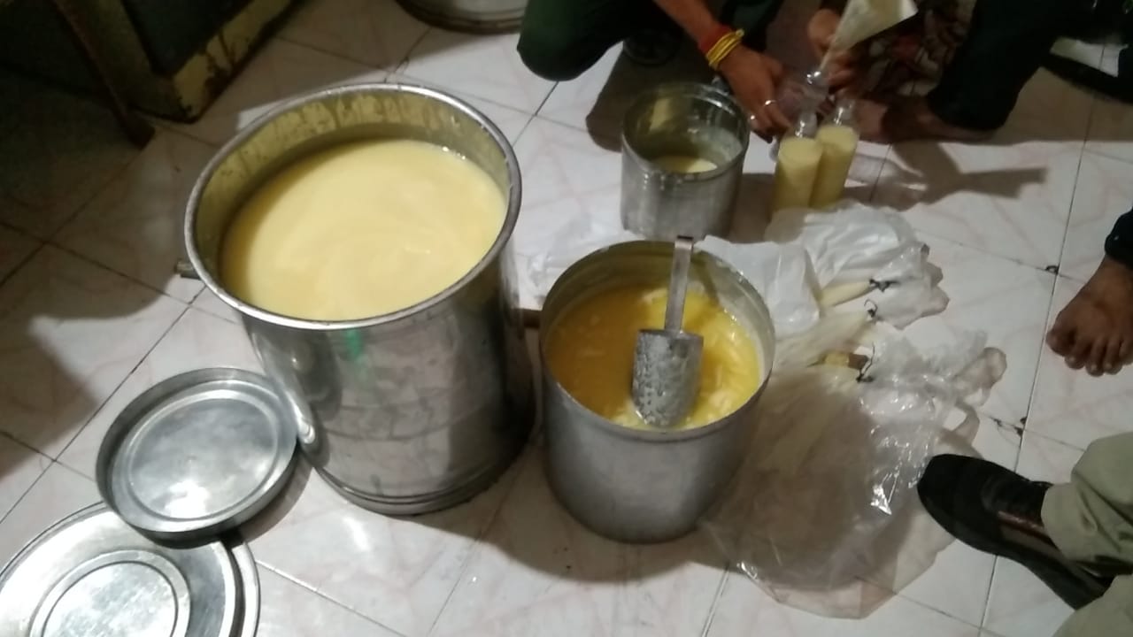 मंगलवार की रात करीब साढ़े नौ बजे औद्योगिक क्षेत्र पुलिस ने मुखबिर सूचना पर अनमोल नगर में एक मकान में दबिश दी। दबिश के दौरान थाना प्रभारी। राजेंद्र वर्मा सहित कई पुलिसकर्मी मौजूद थे।दबिश में पुलिस को मकान में रखी स्टील की टंकी और एक डिब्बे में भरा करीब 40 किलो घी मिला।
