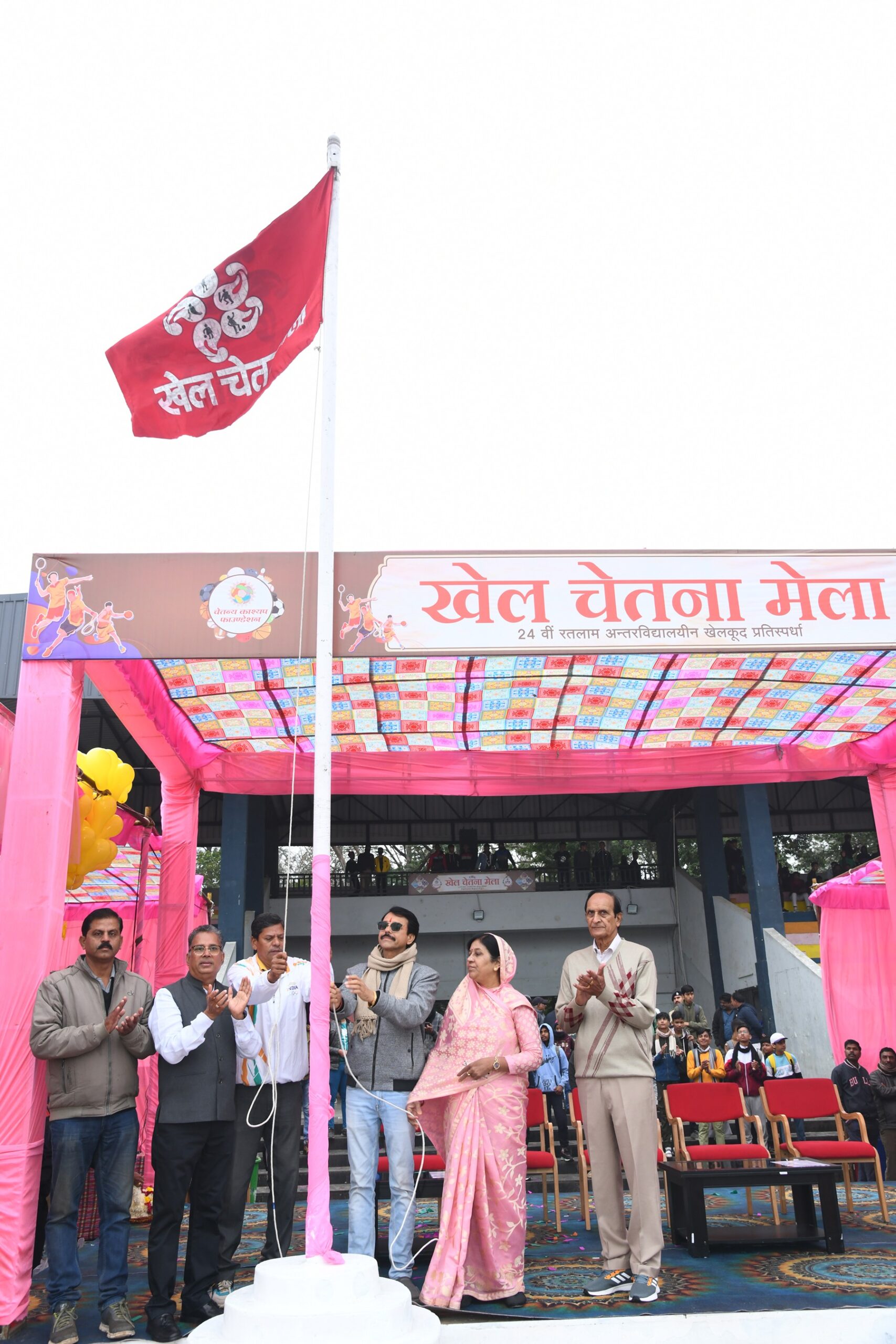 रतलाम, क्रीड़ा भारती एवं चेतन्य काश्यप फाउंडेशन द्वारा आयोजित 24वां खेल चेतना मेला का भव्य शुभारंभ बुधवार को नेहरू स्टेडियम में हुआ। कार्यक्रम की अध्यक्षता महापौर प्रहलाद पटेल ने की। निगम अध्यक्ष मनीषा शर्मा अतिथि रही। महापौर श्री पटेल ने ध्वज वंदन कर खेल चेतना मेला के विधिवत शुभारंभ की घोषणा की। इसके बाद अतिथियों ने गुब्बारे उड़ाए।